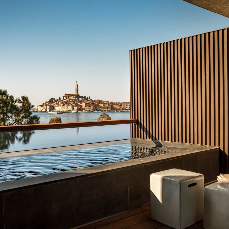 The Grand Park sits on a small peninsula on the edge of the historic Croatian town of Rovinj. Offering views of Old Town and the nearby islands and Adriatic Sea, Grand Park Hotel features a world renowned wellness and spa center, outdoor swimming pool and a marina next to the Mulini Beach. Elegantly decorated rooms feature sea views and a terrace. Each room will have either a king bed or two twins and a private bathroom with a bathtub and a walk-in shower.